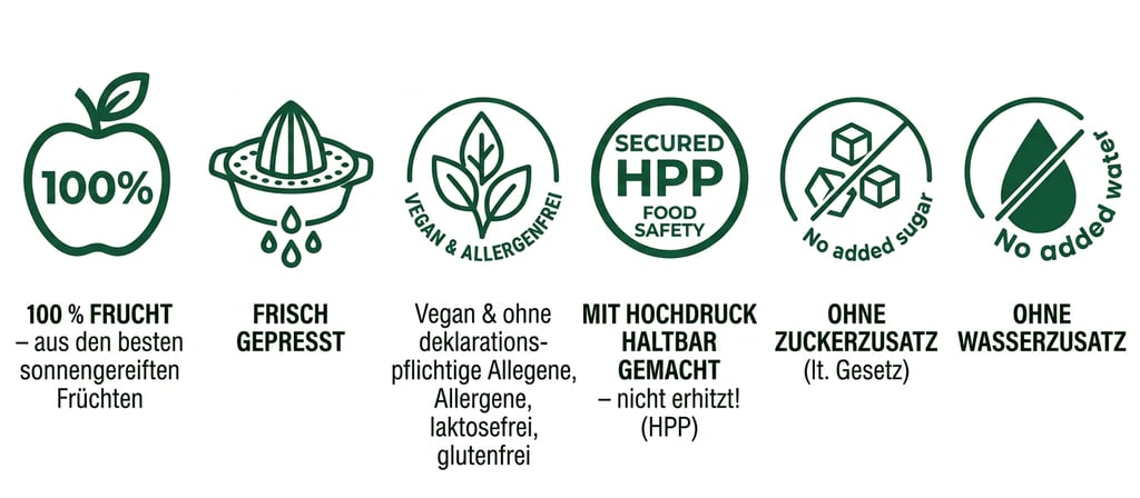 Ein wesentlicher Vorteil unserer Produktion ist der Einsatz der Hochdruckbehandlung (HPP) – einer der modernsten und effektivsten Konservierungstechnologien Europas. HPP ermöglicht es uns, die natürliche Frische, den Geschmack, die Farbe und die Nährstoffe unserer Produkte ohne Hitze und ohne künstliche Konservierungsstoffe zu bewahren und gleichzeitig eine deutlich verlängerte Haltbarkeit von über einem Monat zu erreichen.